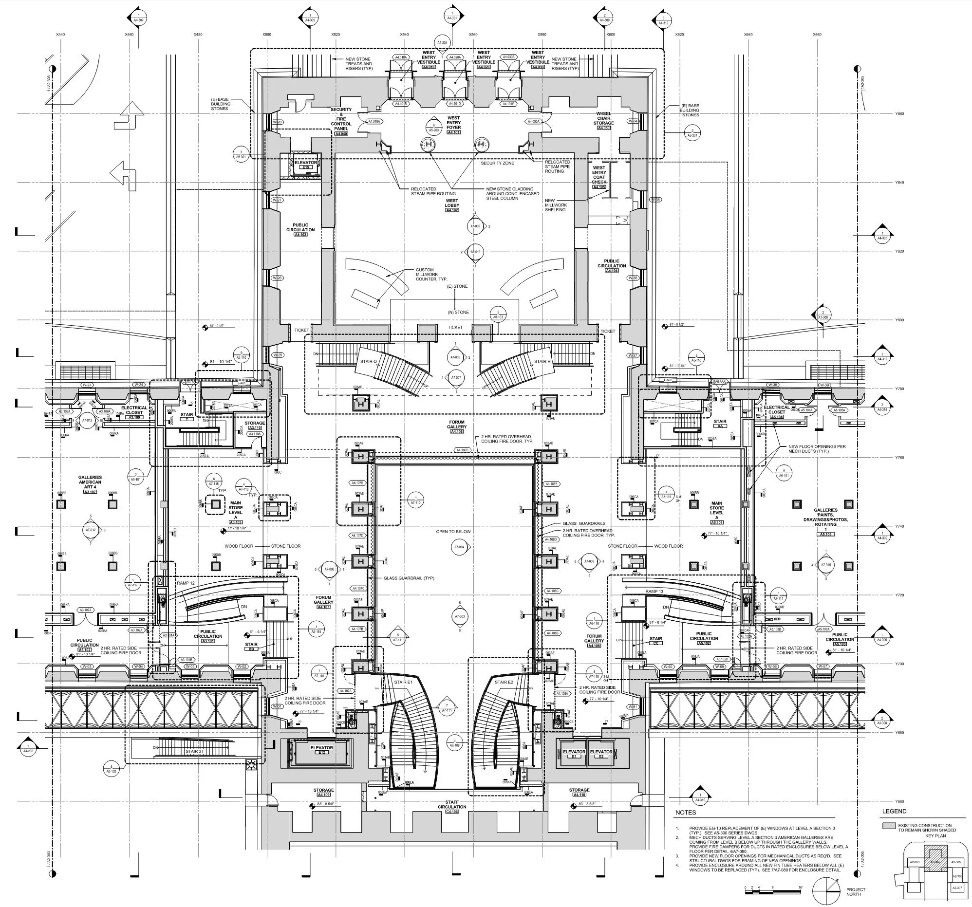 The Core Museum Project is an intervention and renovation of the existing spaces at the Philadelphia Museum of Art. The project aims to reorganize the procession through galleries, gathering areas, retail, and back-of-house spaces. The work at Gehry Partners focused on the project’s architecturally intricate elements, including the stair, retail spaces, articulated entries, and restaurants. The Core Project included the demolition of an existing auditorium to transform it into a gallery space for large-format artwork. The gallery also serves as a transitional space, allowing circulation between two levels. The design studies began with physical model iterations that were translated into parametric 3D modeling software, Digital Project. This approach allowed flexibility in the geometry, which was crucial to meeting future construction tolerances and field measurement discrepancies.